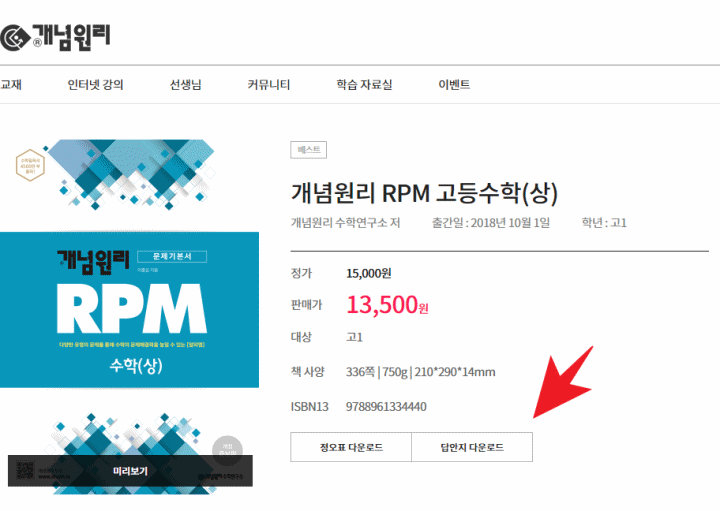 개념원리 RPM 수학은 기초 개념을 잡기 좋은 책입니다. 유형을 외우기보단 개념을 파악하는데 초점을 맞춰 실력 향상에 도움이 되는데요. 오늘은 개념원리 RPM 수학 상 답지 다운로드 방법을 알아보겠습니다.