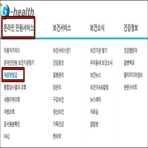 국민건강포털 홈페이지는 포털 등에서 '공중보건포털' 키워드를 검색해 쉽게 검색할 수 있습니다. 홈페이지에 접속하면 고속 서비스 구간에서 인증서 발급[서치화 유료화] 항목을 선택해 주 화면 오른쪽에 고속 서비스 구간을 위치시킵니다.
