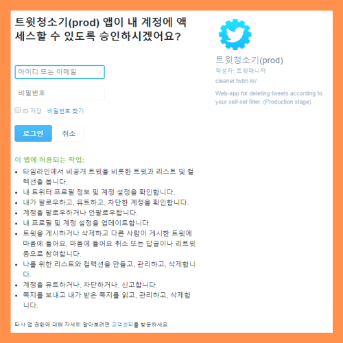 큐비 트윗청소기 트위터 글 삭제